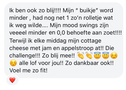 Mijn constante drang naar zoet verdween als sneeuw voor de zon. Maar ook de moodswings, de energiedips, het opgeblazen gevoel en zelfs dat vetrandje dat er niet af te sporten leek!