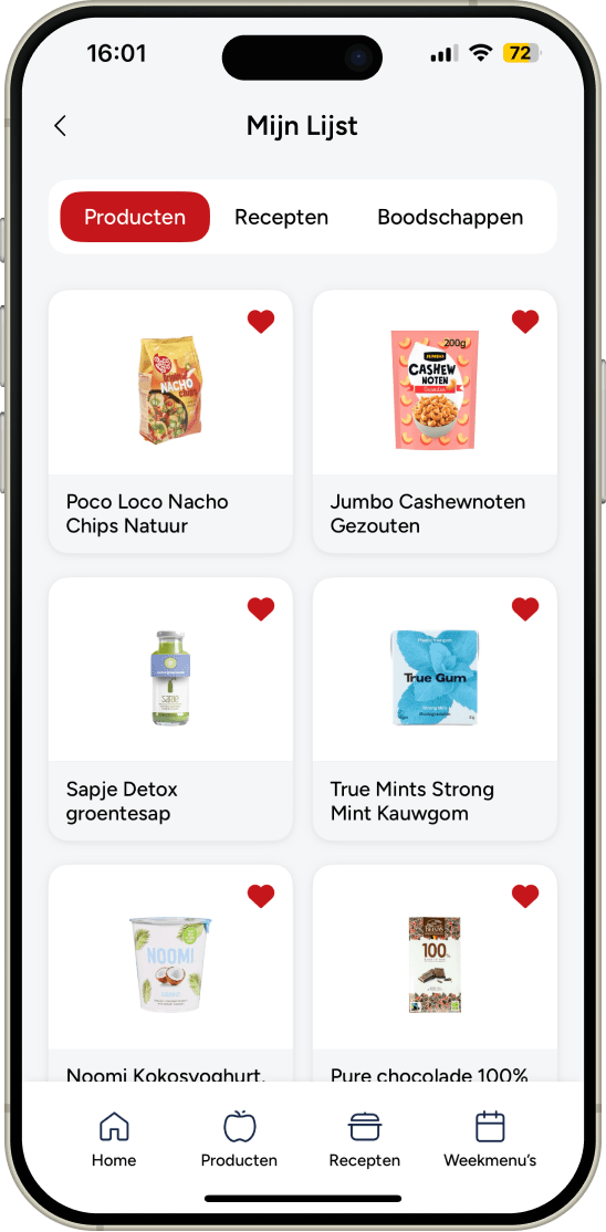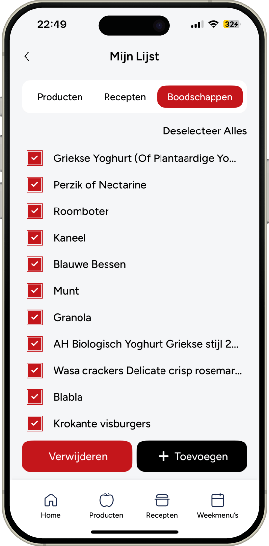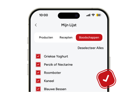 Al je favorieten + recepten automatisch op je boodschappenlijst. Van irritante rondjes door de supermarkt, naar gewoon je lijst afwerken en in 10 minuten weer buiten.