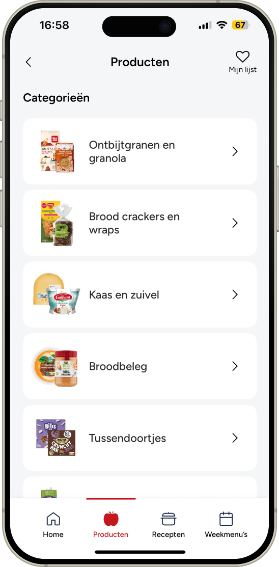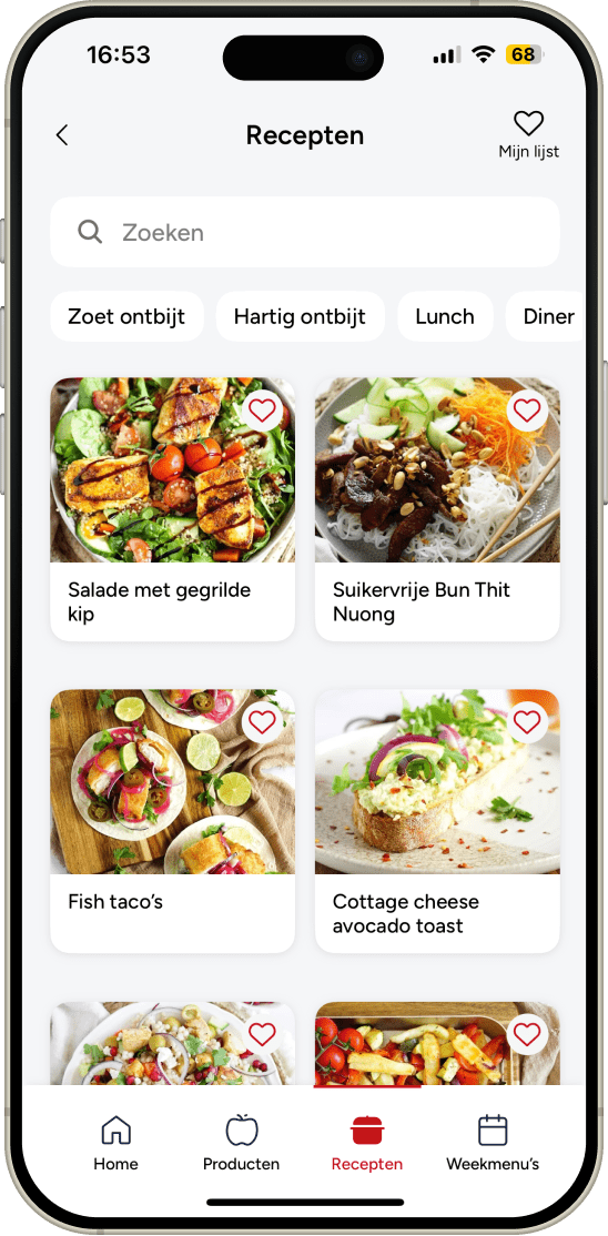 Alle suikervrije producten in de supermarkt, incl. recepten en weekmenu’s, in één handige app.